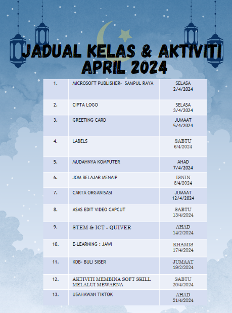 JADUAL KELAS & AKTIVITI APRIL 2024