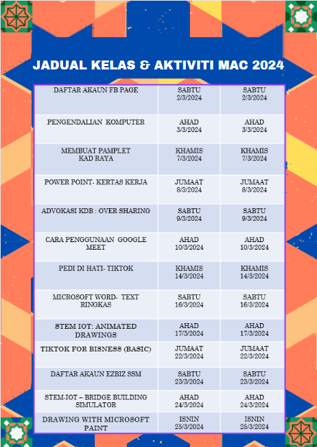 JADUAL KELAS & AKTIVITI MAC 2024