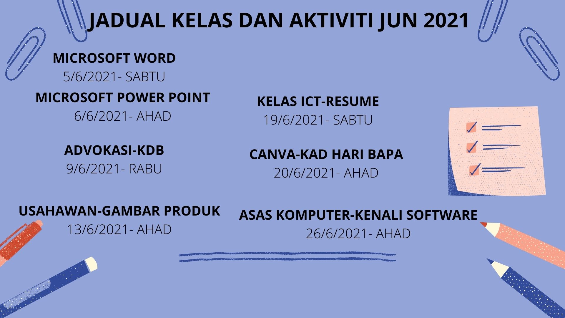 JADUAL KELAS DAN AKTIVITI JUN 2021