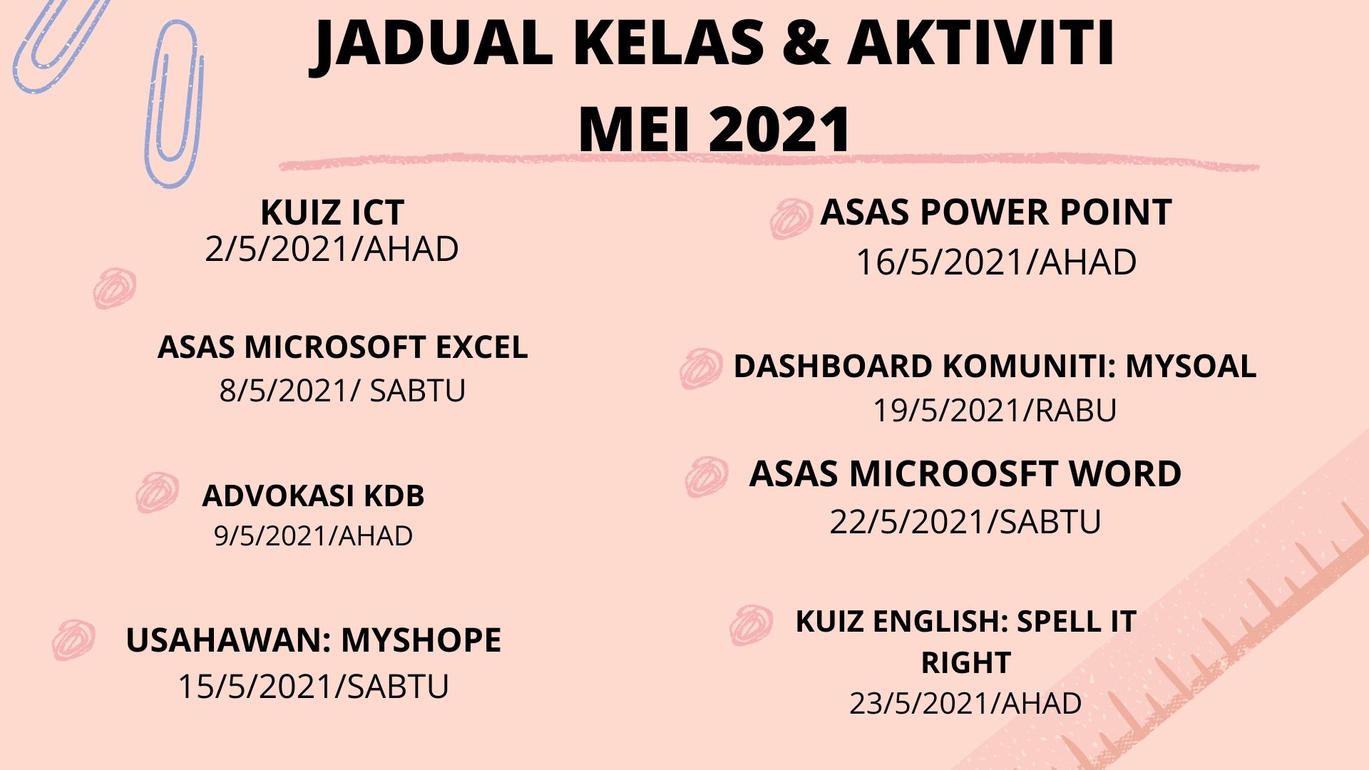 JADUAL KELAS DAN AKTIVITI MEI 2021